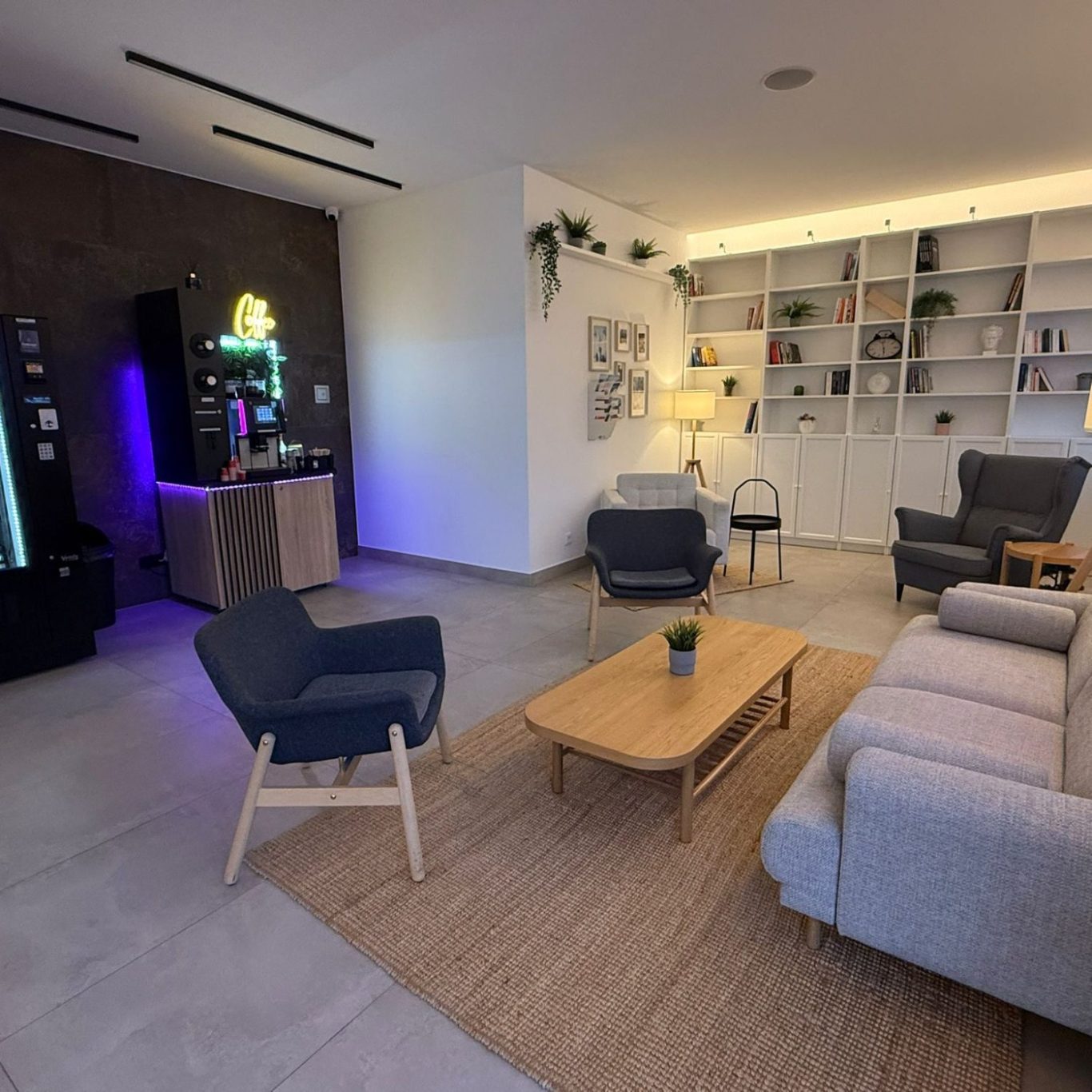 24h Lobby mit Kaffee und Getränkeautomat und Snacks